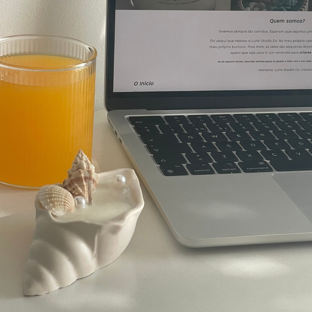 Decorada com conchas e pérolas, é perfeita para criar ambientes leves, frescos e com aroma a férias.
